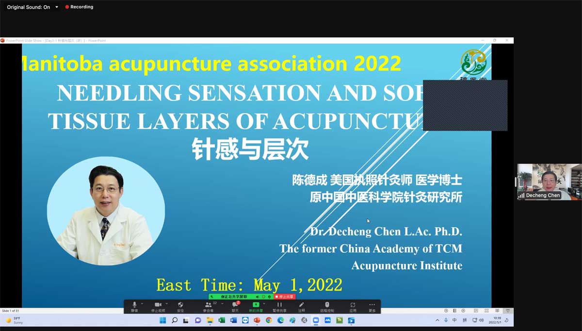 On May 1st and May 15th, 2022, MPAA was pleased to have Dr. Decheng Chen present an online seminar on Introduction to Motion Acupuncture. Dr. Decheng Chen is a licensed acupuncturist in New York and Ph.D. and has over 30 years of clinical and teaching experience world-wide. He discussed the four layers of soft tissue, the sensation felt by the patient and the acupuncturist, the sensation in the different layers, and the relationship between De Qi and its effects. Through videos we observed his application of Motion Acupuncture and the positive effects the treatments had on his patients. A total of 29 people attended the online seminar.